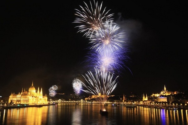 Vatromet obasjava Dunav u Budimpešti, gdje se slavi Dan svetog Stjepana.