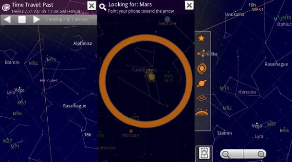 Google Sky Map, besplatna aplikacija za androide kombinira informaciju o lokaciji korisnika i smjera u koji je postavljen pametni telefon te prikazuje snimku noćnog neba s pojedinim zvijezdama i planetima.